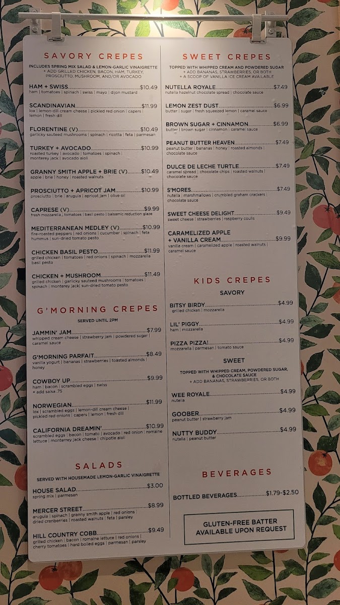 The menu features an array of flavors, including the renowned Nutella and refreshing lemon crepes, praised for their balanced sweetness and citrus tang. For a unique twist, try the Scandinavian crepe, reminiscent of a lox bagel but with a light and chewy crepe base, accompanied by a complimentary side salad.